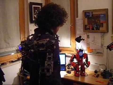 Petit test en vidéo montrant le contrôle à distance d’un robot humanoide Cyclops MK II par un exosquelette fonctionnel…en LEGO!